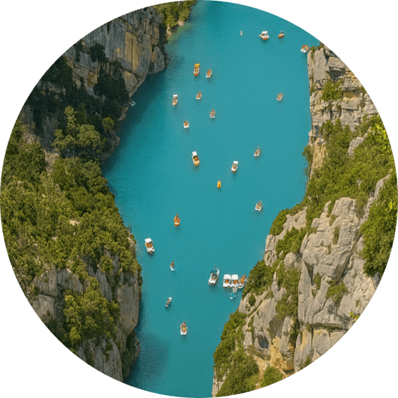 At Lake Sainte-Croix, the Verdon’s turquoise waters unfold like a luminous mirror shimmering with emerald reflections. When conditions allow, a peaceful pedal boat escape leads you to the entrance of the gorges–towering cliffs, the Saint-Maurin waterfall, and a gentle, deeply sensory immersion. And for those tempted, a refreshing swim in these crystal-clear waters adds the perfect finishing touch to this exceptional moment.